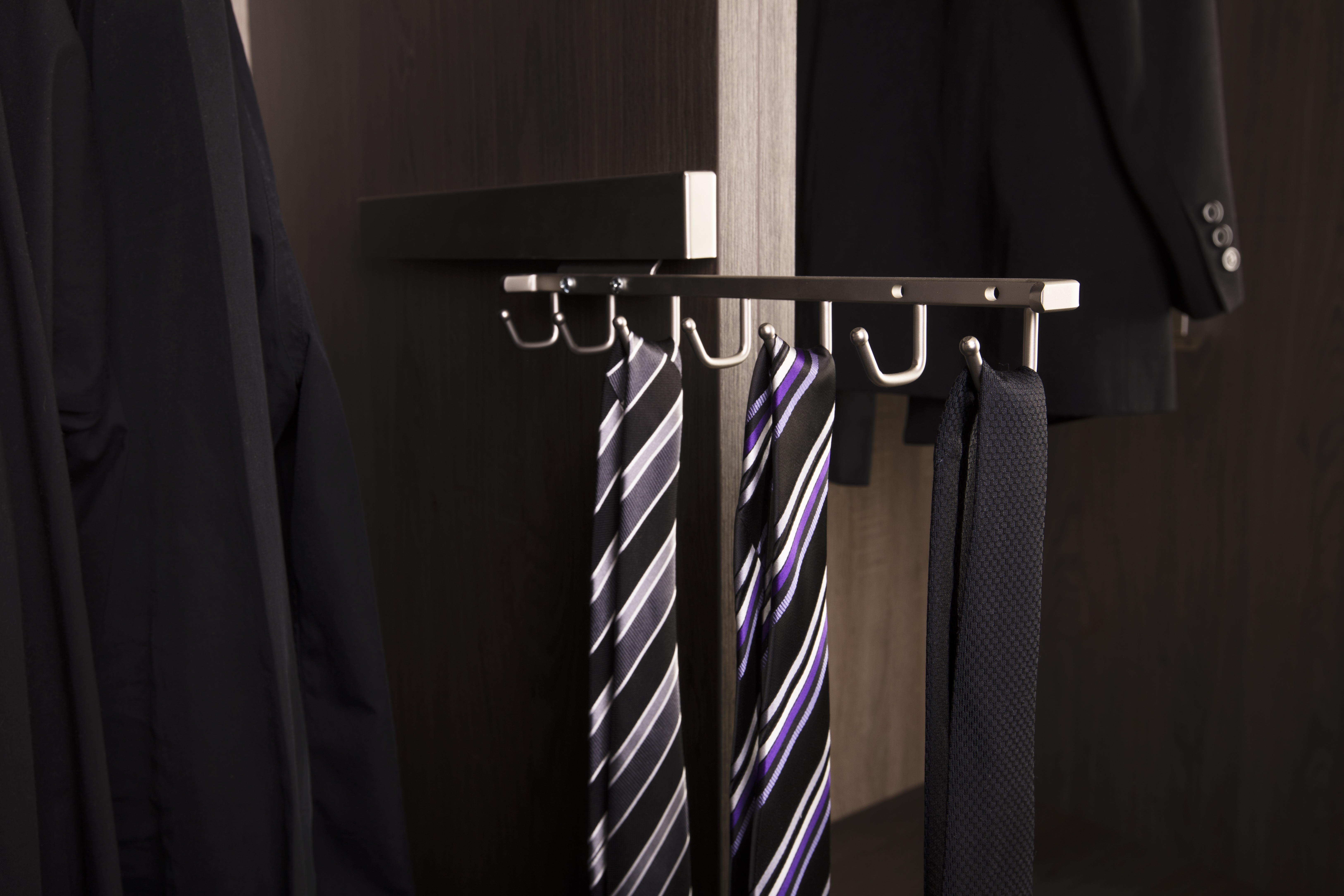 • Neatly arranges ties for easy selection