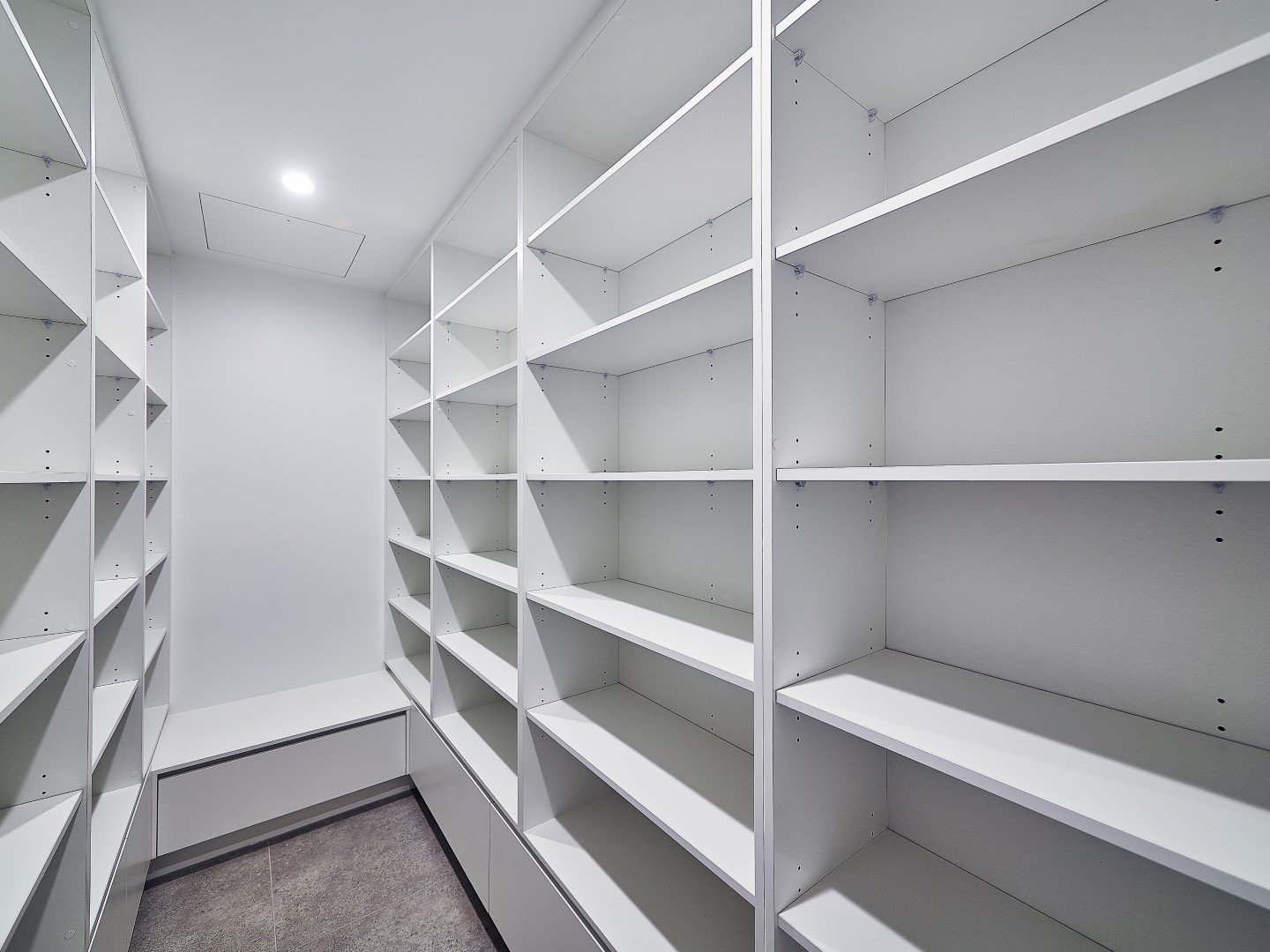 Reinforced shelving with a front cleat for added strength and a clean, built-in finish.